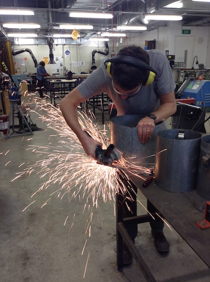 Clark Bardsley Materials #125 Hardboard#002 Flue Tools CompassGrinderLaser-cutter Process Finished work Renowned local drummer Joe McCallum played Clarks drums at the House Music event at Canterbury Museum